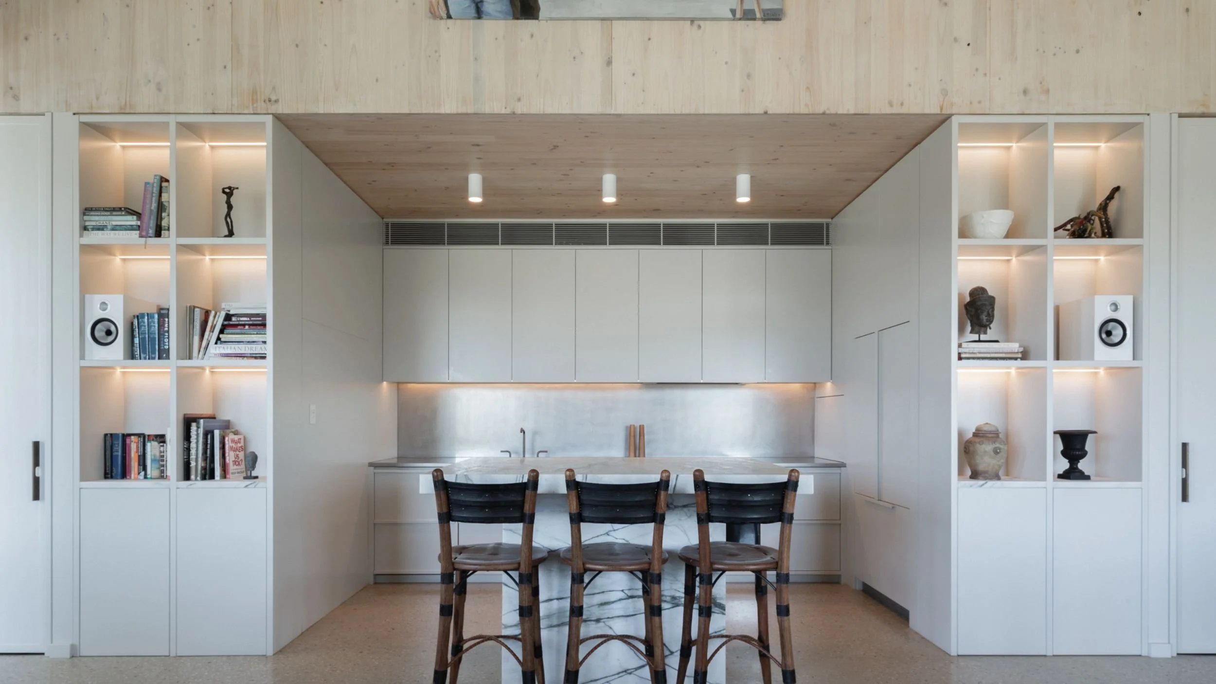 The quintessential Brother Nature project, River is a wonderful example of modern bush living. Cross Laminated Timber and photovoltaic and passive solar are some of the techniques utilised to deliver River with environmental consciousness, and further enhance the home’s seamless integration into the area’s natural splendour. Every architectural detail and material junction has been thoughtfully considered by Brother Nature and Architect Jascha Oakes Design, to ensure this symmetrical, pavilion-style home is private, functional and beautiful. A difficult site and challenging weather conditions have allowed us to get extra creative in our execution, and presented the opportunity to bring far-flung brilliant teams together (one of our favourite things!). Inside, materiality and texture hold court and wrap this home’s occupants in a warm and natural palette in both contrast to and perfect harmony with the great outdoors. River is a case study in contemporary Australian bush homes.